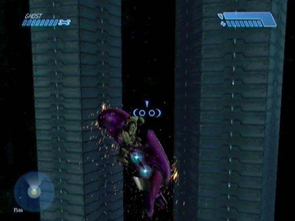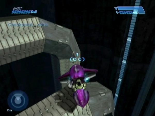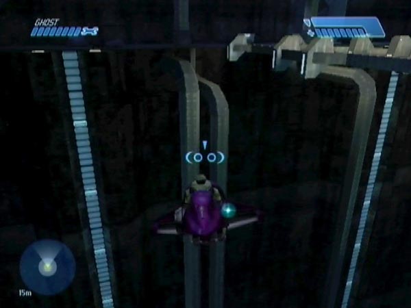 To take you to the bottom, the Ghost's speed needs to be sufficiently impeded by friction from the two pipes. That was how Spasmodic had got his Warthog down of course, but a Ghost has very different geometry, as well as being overall smaller, so it's not surprising that the Ghost struggles for enough grip, and doesn't lock into the pipes neatly and readily like the Warthog can.