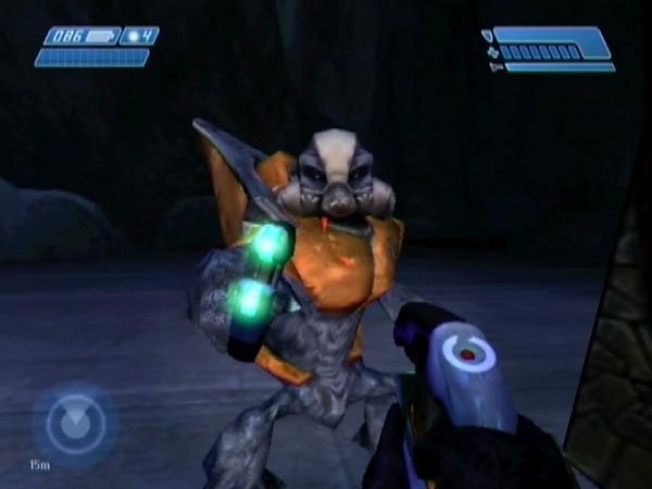For each of the three Shades in the cavern, there's a dedicated team of Grunts to keep it manned. There's a team of three on the left as you enter, a duo on the right, and another trio on the far platform. When a Shade becomes vacant, a replacement gunner - assuming there's still one available - is soon woken to man it, if he's not already awake. But what if the Shade is inaccessible, way down at the bottom of the cavern?