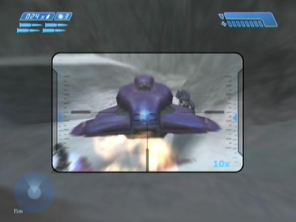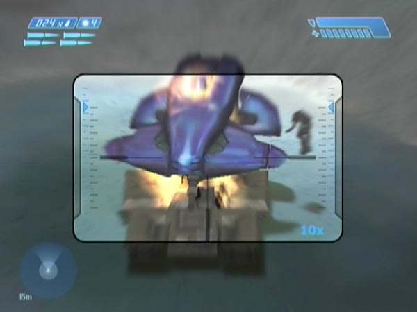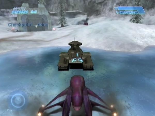 There's a bothersome issue to cope with however. A checkpoint is triggered along with the battle, but you probably don't want to get it, as you wouldn't then be able to revert to your save point. Accordingly, some checkpoint delaying is in order. You can cause an initial checkpoint delay by throwing a grenade beforehand (throw high for maximum delay), or by using Banshee fire if you're flying. Thereafter, enemy threat may soon become sufficient to continue the delay.